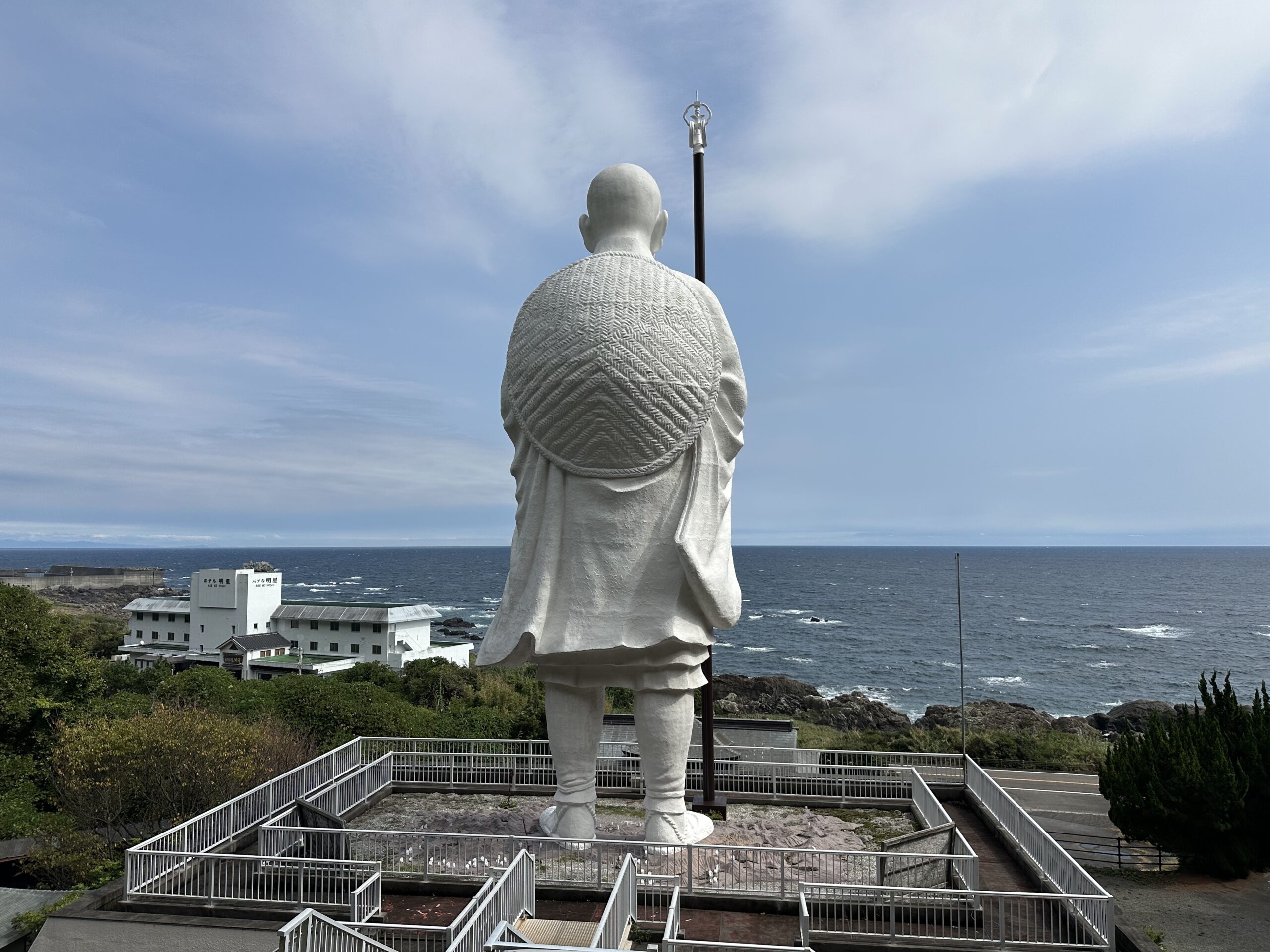 The statue of Kobo Daishi was even more massive up close. I will admit that the first thought that entered my mind when I saw the statue up close was Gulliver’s Travels, where Gulliver appears as a giant among the tiny inhabitants of Lilliput. From its lofty position here at the hilltop, the statue of Kobo Daishi had a commanding view of the ocean beyond, staring far into the horizon and watching the waves crash onto the shore. It was an impressive sight on this gorgeous day.